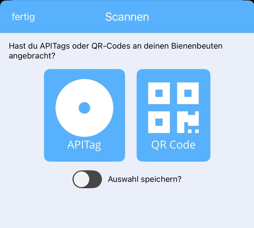 Speichert man die Auswahl nicht, wird man beim nächsten mal wieder gefragt, ob APITag oder QR Code